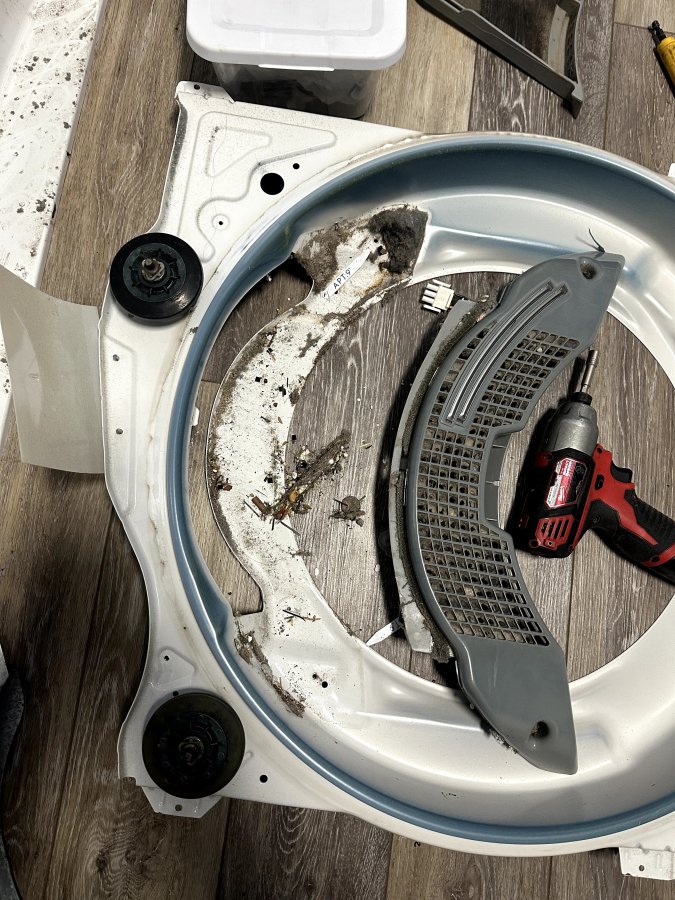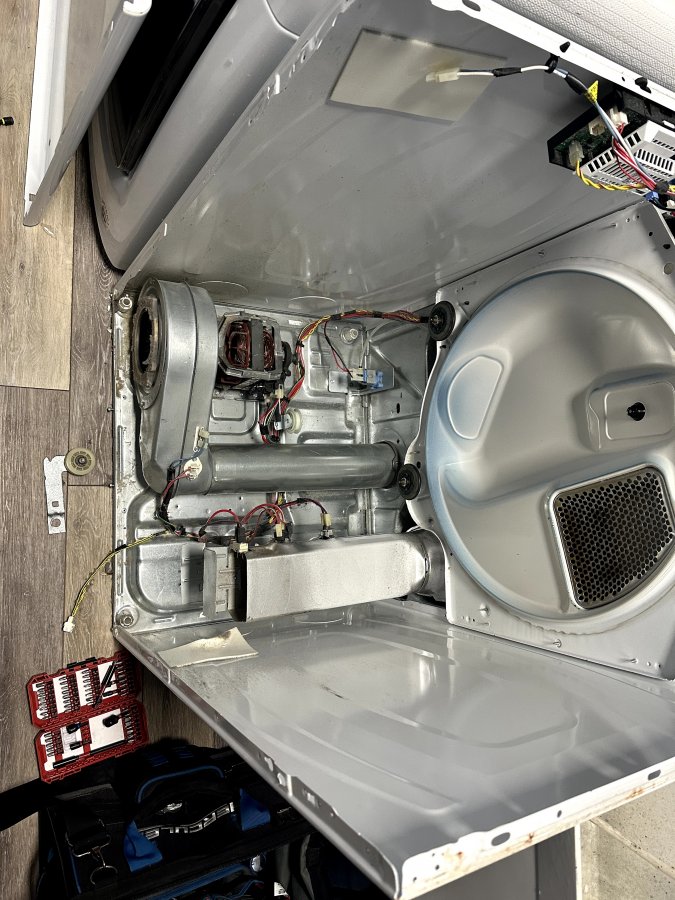 A loud dryer can be more than just annoying — it’s often a sign of a failing component. This Samsung dryer repair in Raleigh (ZIP 27607) involved replacing a noisy idler pulley and performing a full internal cleaning to restore smooth, quiet operation.