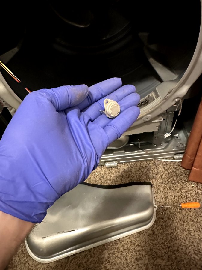 Dryer turns on but clothes stay damp? In many cases, the issue is a failed thermal fuse or high-limit thermostat. This service call in Raleigh, NC (ZIP 27616) addressed both, restoring heat and improving efficiency through full maintenance.