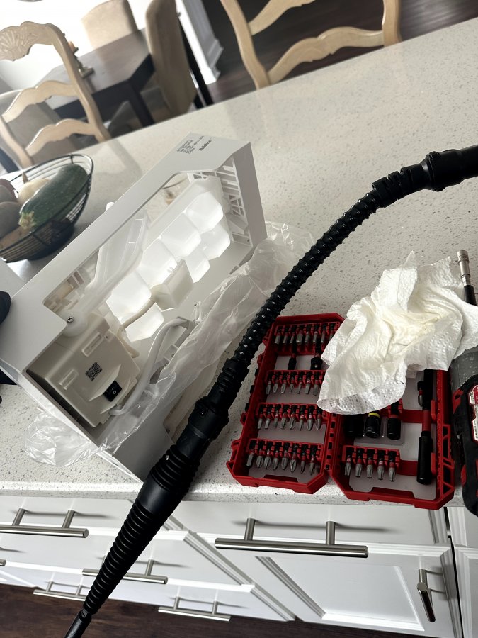 We installed a brand-new OEM ice maker assembly and replaced the water filter. Once installed, we flushed the system and verified that ice production resumed and water flow returned to normal.