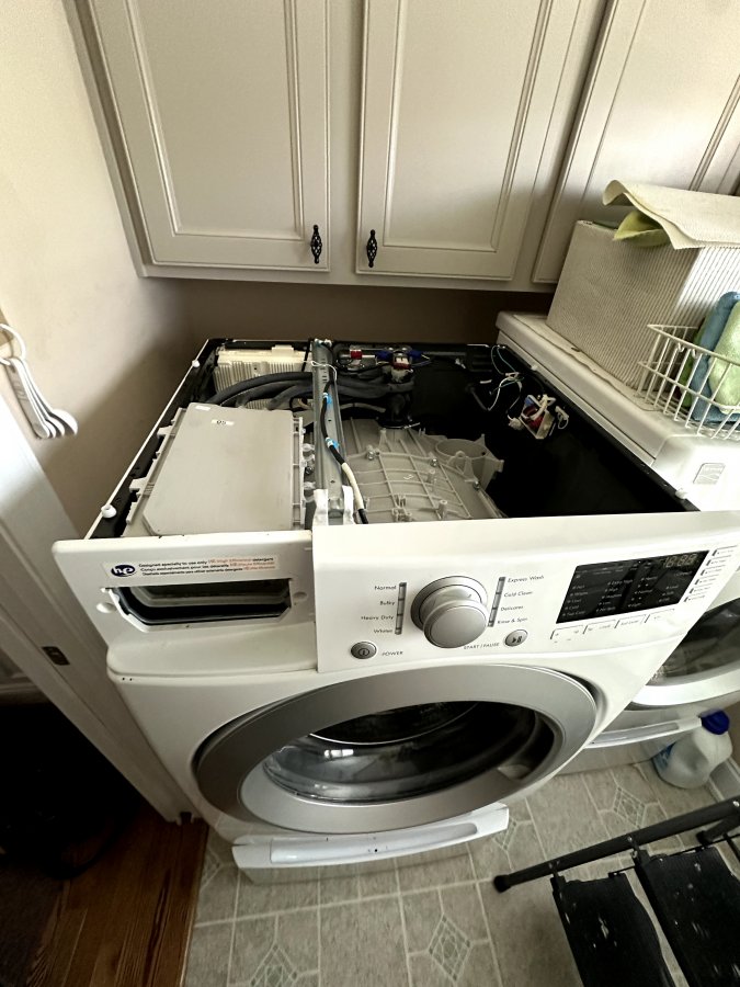 Is your LG washing machine leaving water in the drum or stopping mid-cycle? This LG washer repair in Raleigh (ZIP 27607) involved replacing a faulty drain pump to restore full draining and spin functionality.