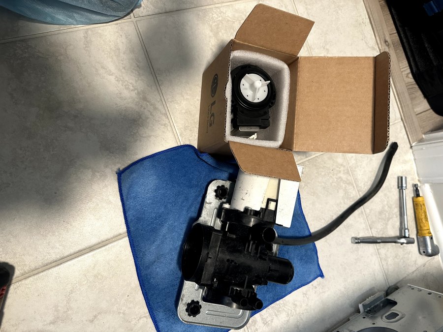 We removed the damaged pump and installed a genuine LG replacement. After testing, the washer drained properly and ran quietly through the entire cycle. Keeping the drain system clean and functional helps prevent motor overload and water damage.